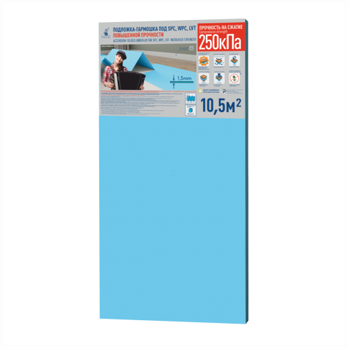 Код товара: 52502342,00 руб.Быстрый просмотрПодложка-гармошка повышенной прочности (250кПа) под SPC, WPC, LVT 1050×500×1.5мм, синяя