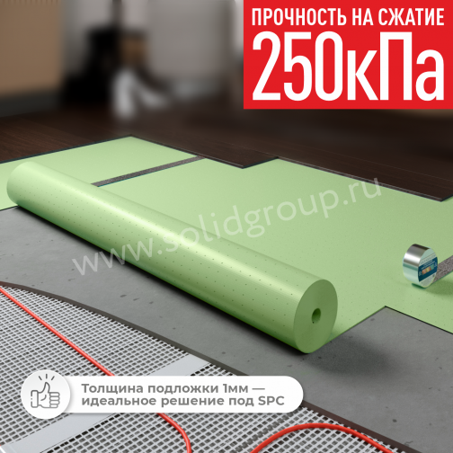 Подложка SOLID PROtector Thermo SPC перфорированная для теплых водяных полов под SPC, WPC, LVT