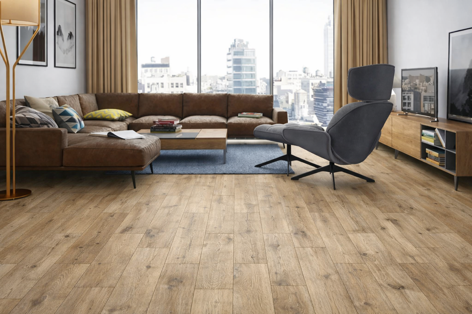 Ламинат Classen Дуб Альтеа 52805 — это износостойкое напольное покрытие с натуральным древесным декором, выполненным в тёплых светло-дубовых оттенках. Элегантный рисунок и мягкая текстура создают уютную атмосферу и визуально расширяют пространство, делая интерьер светлее и современнее.