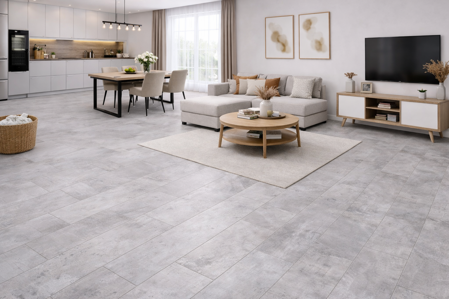 Ламинат Classen Бетон Белый Антик 56030 — это надежное и стильное напольное покрытие с имитацией белого бетона в антикварном стиле. Оно предназначено для создания современного, светлого и уютного интерьера в жилых, коммерческих и общественных помещениях.