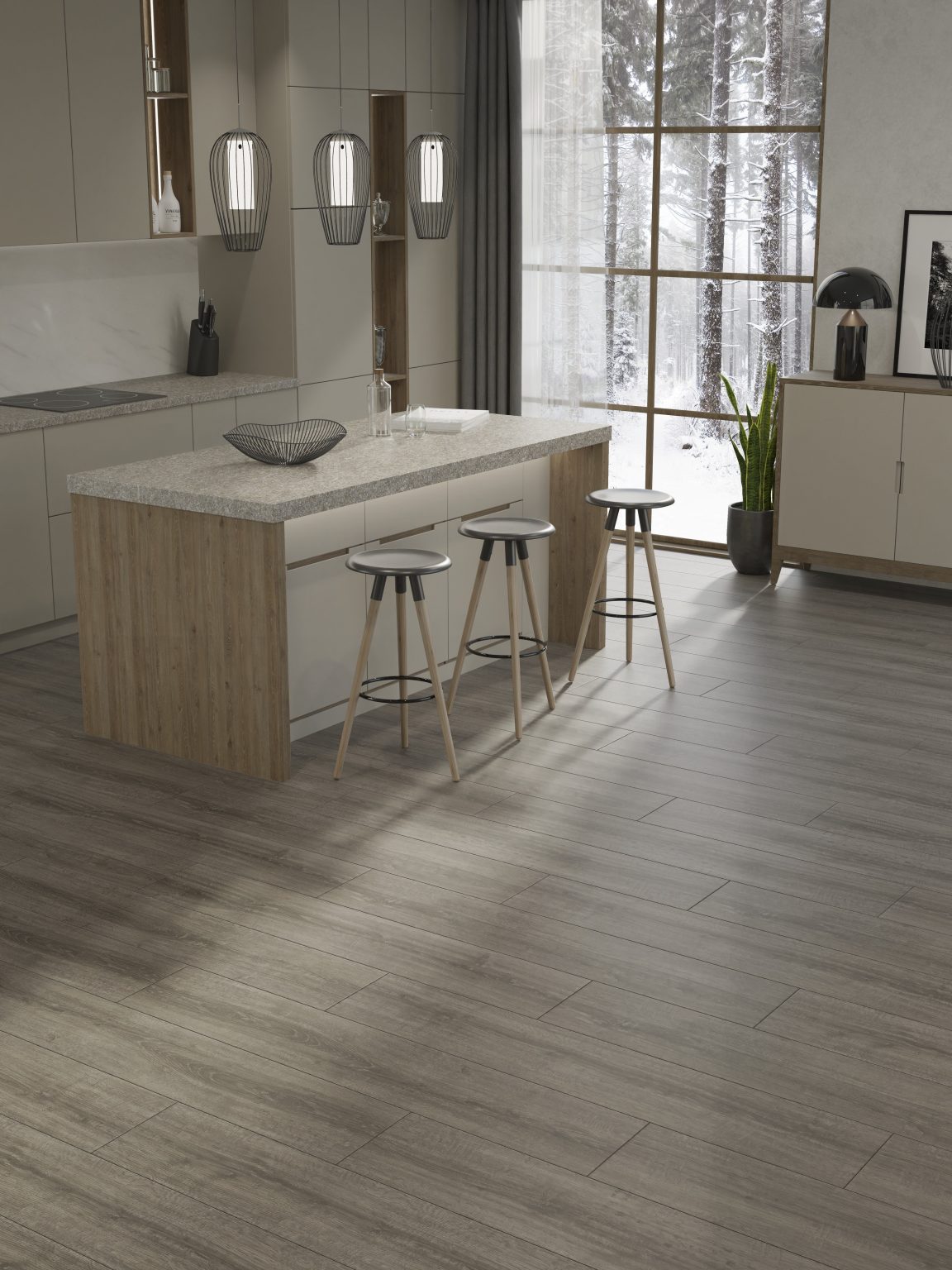 Ламинат EGGER Дуб Шерман серый EPL185 — современное напольное покрытие с натуральной текстурой дуба и стильным серым оттенком. Этот ламинат идеально подходит для интерьеров в скандинавском, лофт и современном стиле, придавая помещению сдержанную элегантность и визуальную лёгкость.