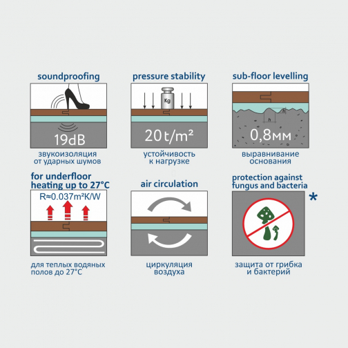 Антибактериальные свойства: Подложка имеет антибактерицидные и противогрибковые свойства, в том числе эффективна против: Aspergillus brasiliensis (ATCC 9642), Penicillium funiculosum (ATCC 11797), Chaetomium globosum (ATCC 6205), Trichoderma virens (ATCC 9645), Aureobasidium Pullulans (ATCC 15233)» ( По данным исследований, проведенным Intertek Testing Services Taiwan Ltd)
