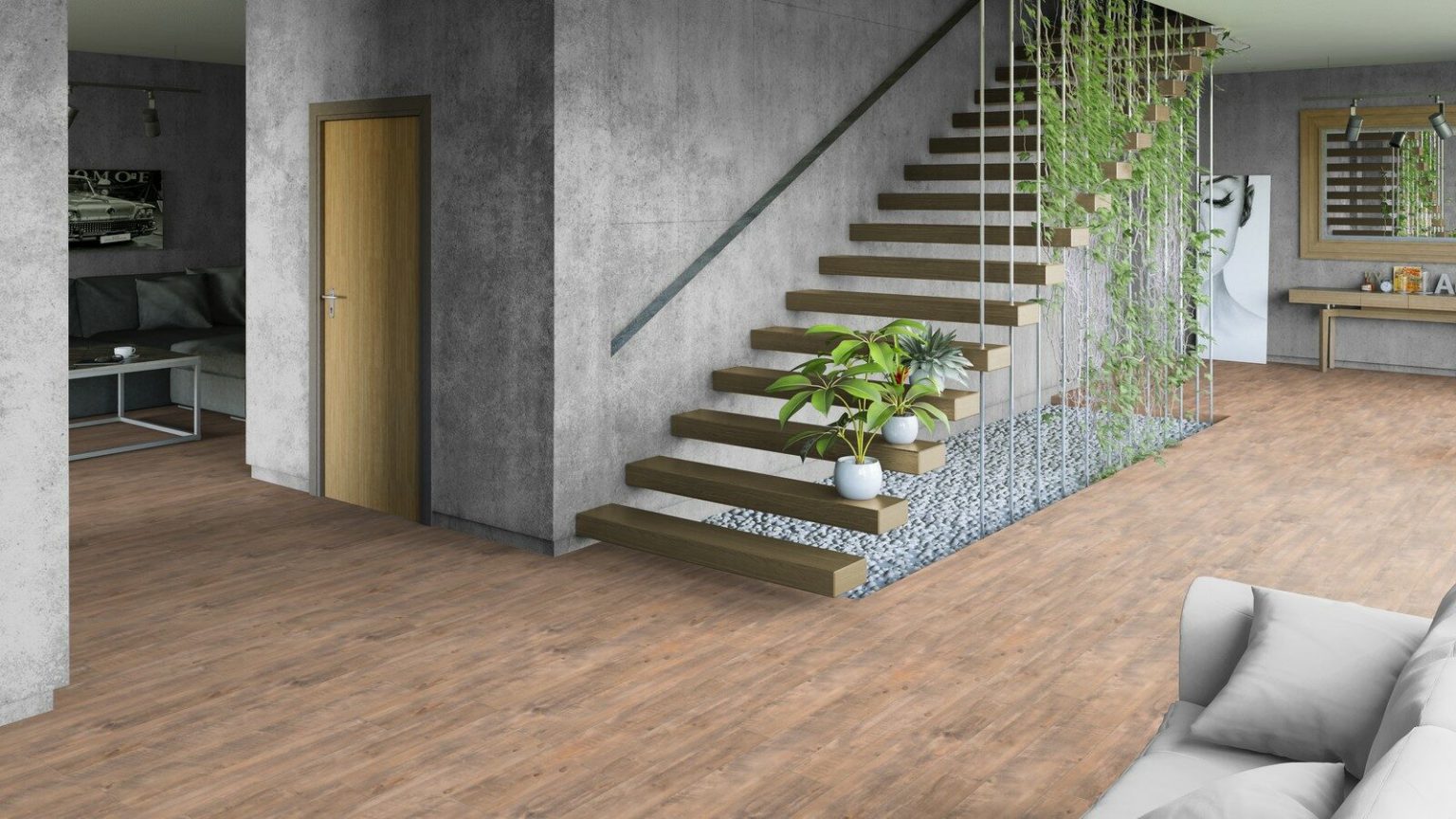 Модель Woody выделяется натуральным древесным дизайном, который придаёт интерьеру уют и стиль. Влагостойкость и устойчивость к царапинам делают этот виниловый ламинат практичным выбором для жилых и коммерческих помещений. Укладка выполняется быстро и удобно благодаря замковой системе без клея. Подходит для использования с системами тёплого пола.